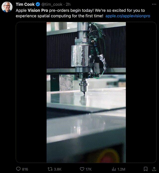随着预购开始,库克发布了这段视频,展示了一台Vision Pro是怎样生产出来的。