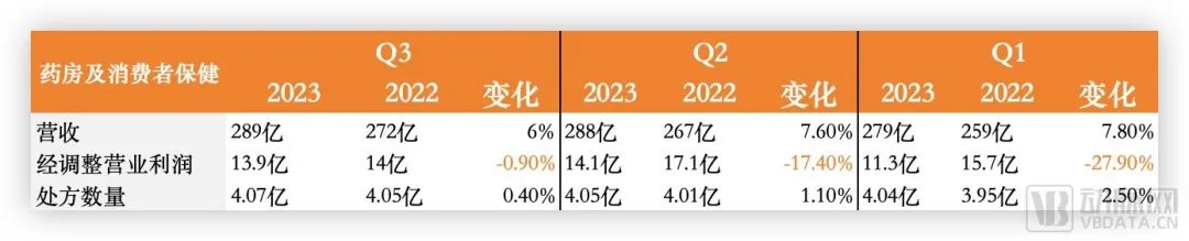如果试着从财报中找寻原因,可以看到药房和消费者健康业务或是其中关键。