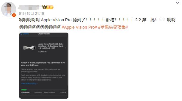 苹果官方表示 2 月 2 日 Vision Pro 开始正式发售,但用户要是想拿到首台 Vision Pro,可能至少要等到小半个月后。