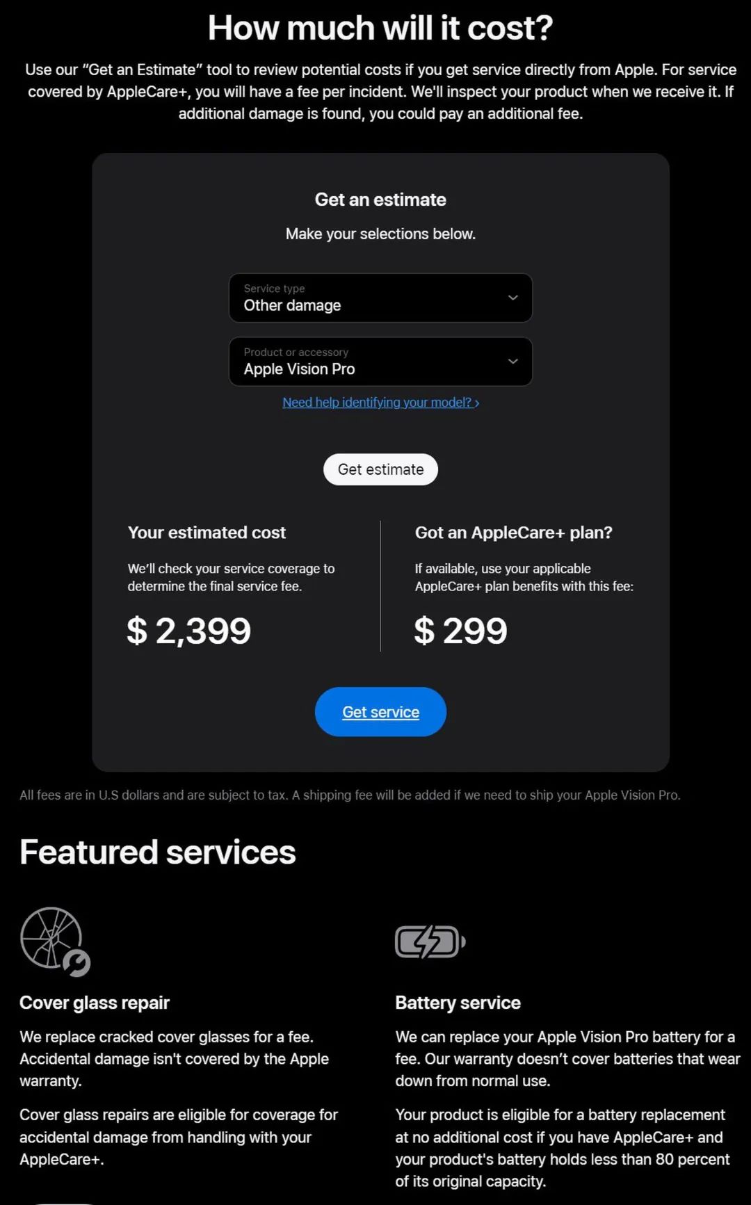 即便 Vision Pro 首批只在美国本土发售,设备价格高昂,就连维修费用也高达 17000 多元( 2399 美元)。但这并未阻止全球尝鲜者和发烧友的踊跃下单。