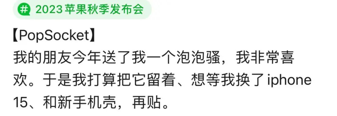 2014年,美国哲学教授David Barnett为了解决有线耳机总是揉成一团的问题,建立了手机气囊支架品牌PopSockets,中文名叫泡泡骚,“耳机线可以缠绕在手机支架上了”。但没过几年苹果就发来温柔一刀,耳机没有线了,泡泡骚失去了诞生目的。