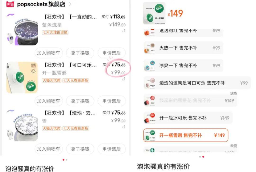 当你还在思索一个泡泡帽69元值不值时,它已经悄悄涨价到169元。这个价钱虽然你可以直接在拼多多买一兜子手机支架,但在泡泡骚的世界里,真的不算什么。