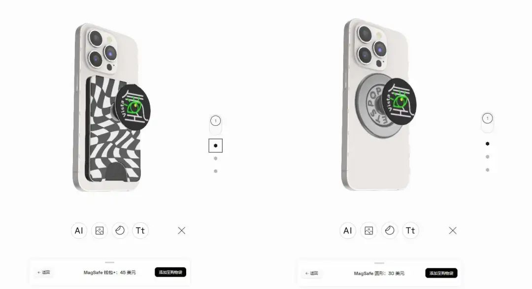 两者合二为一就是3款经典产品:磁吸式支架“啪嗒”;手机上的跑道、卡在两侧的底座“泡泡溜”;以及能装卡的卡包。
