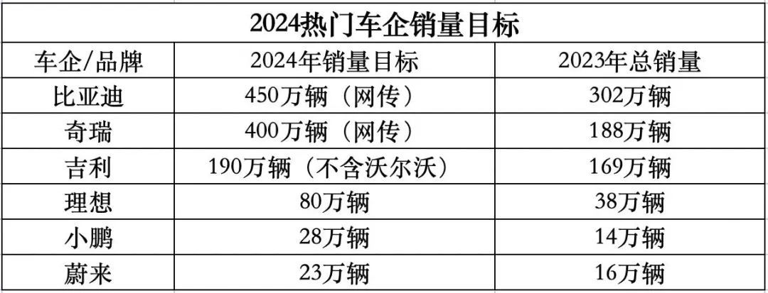 声势不能少,2024热门车企销量目标,竟有比去年还低的?