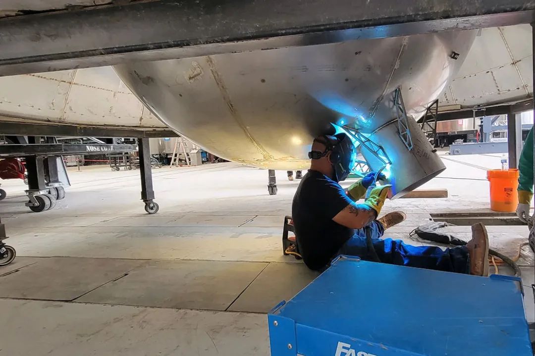 如果你看到 SpaceX 直接在露天坝里焊火箭,工人乘坐吊车上火箭检修,甚至造火箭的场地连个大门都没有,狗在里面乱跑人在里面乱窜……