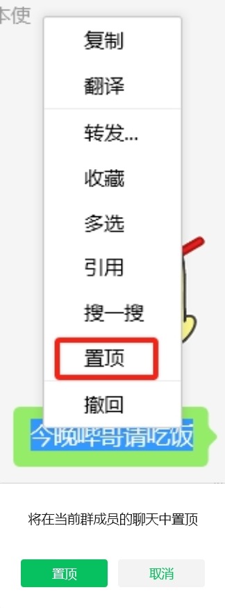 群主或群管理员可选择将群内消息记录置顶,右键该消息点击「置顶」就OK。