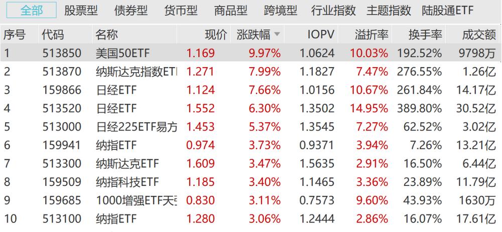 频频出现高溢价,跨境ETF成为市场聚焦点,今天轮到了美国50ETF。