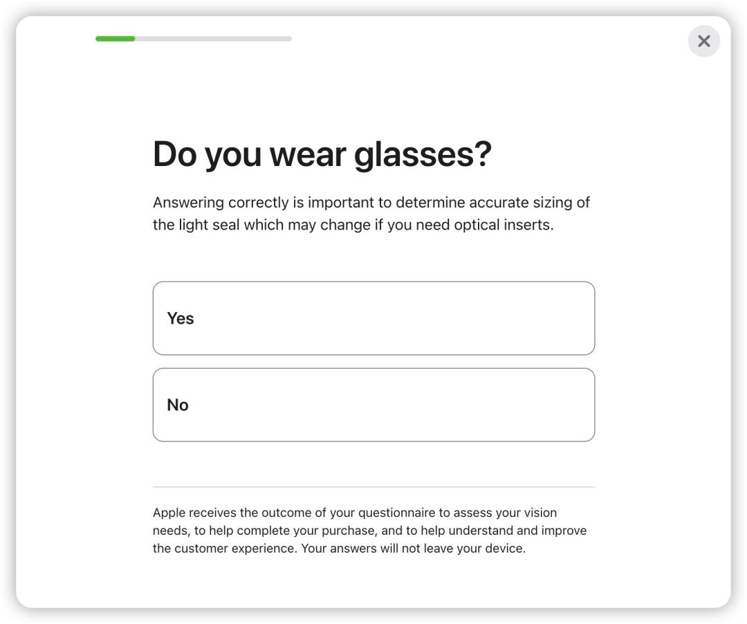 而且和iPhone相比,这次Vision Pro的线上选购流程也有变化,首先需要通过特定的测量流程,引导用户向四周转动头部,测量必要的头围尺寸。
