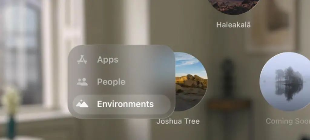 回到Vision Pro的主界面,可以看到App、People、Environments三个选项,App就是应用程序,而“People”则是联系人。