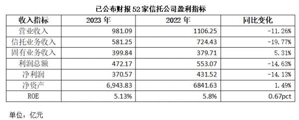 2023年,行业内过半的信托公司利润总额下滑明显。