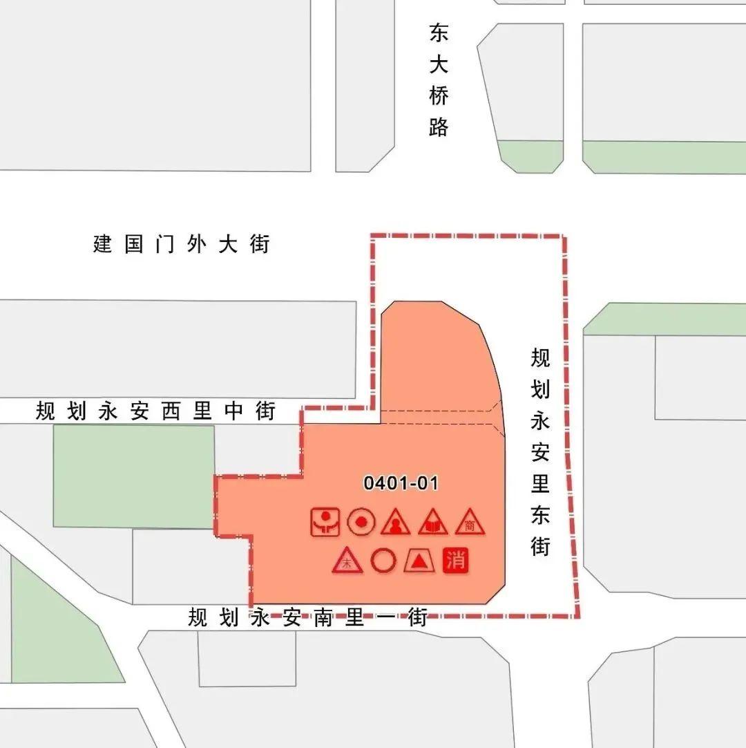 地块西至双子座大厦东侧道路、国泰饭店、朝阳区教委用地东边界,东至规划永安里东街,北至建国门外大街,南至规划永安南里一街。