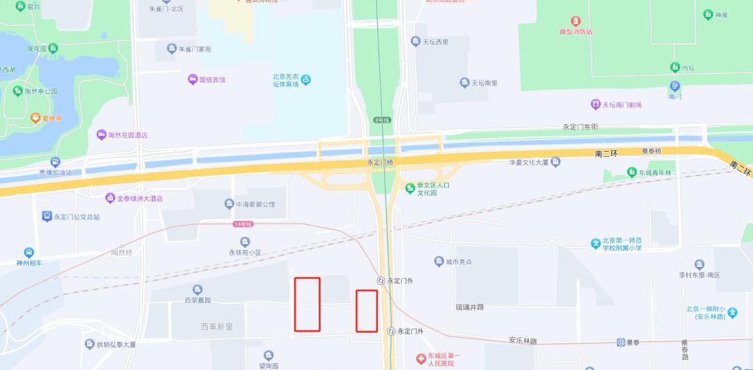 东城区永定门外的地块,位置就在南二环边,距离8号线和14号线双轨交汇的永定门外站约400米,北侧即是万人摇的新型共产房永定府。地块西至燕墩西街,东至永外老街,北至铁路线,南至革新南路。