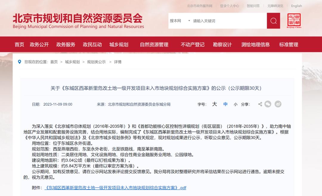 东城|西革新里地块二环可能 要上新了!11月9号,北京规资委公示《东城区西革新里危改土地一级开发项目未入市地块规划综合实施方案》。