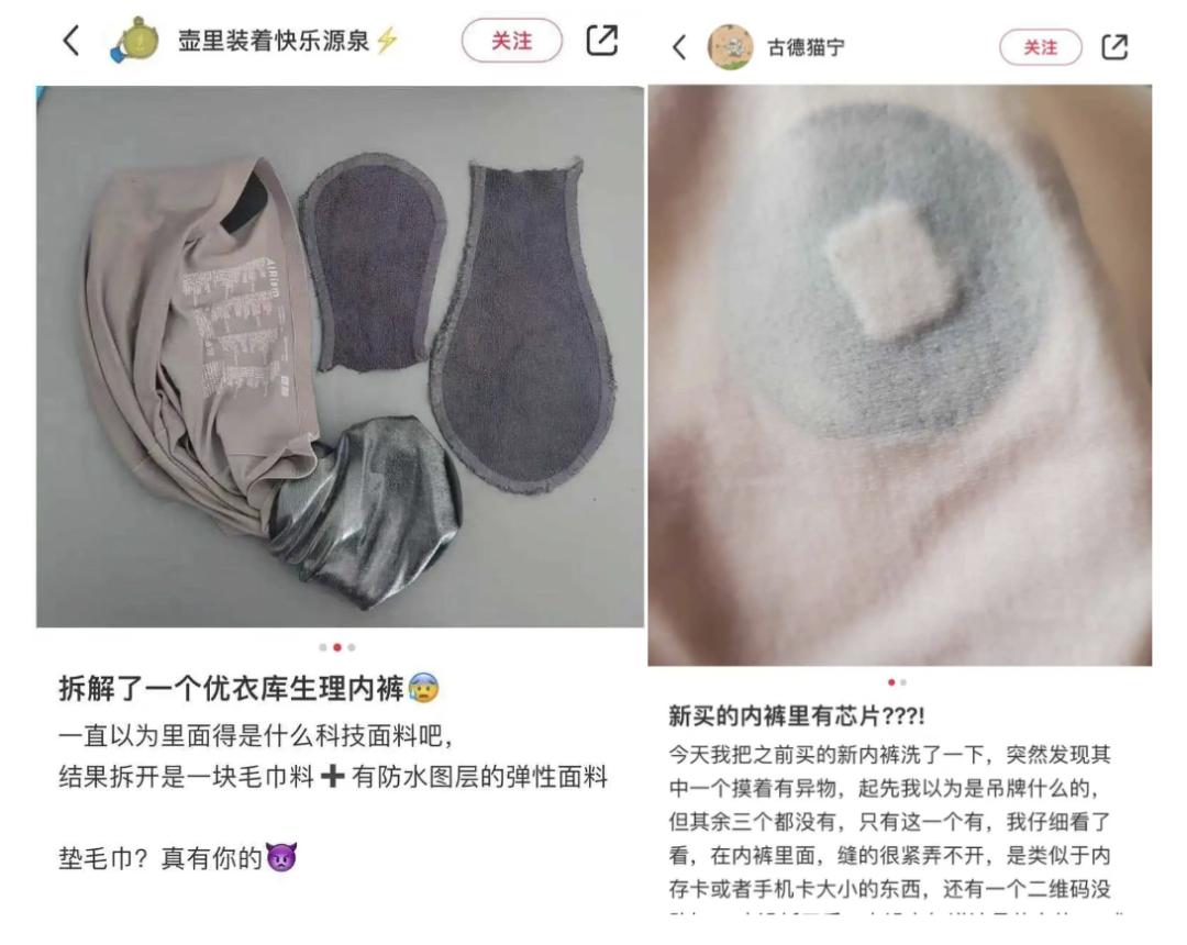 优衣库149元一条的“新生代吸水”生理内裤被网友拆穿秘诀只是毛巾料和防水涂层、号称磁场对身体有益的“量子芯片内裤”其实只是加了块发热磁石在夹缝里……没有想不到的,只有内裤商家们思路还没涉及到的。