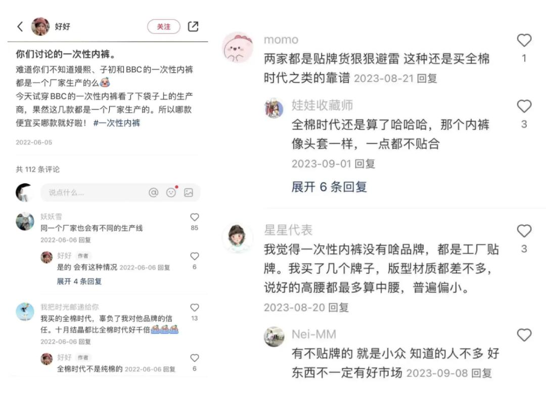 评论区两方也展开了激烈的辩论。一部分网友认为博主不该因某几个牌子就一棒子打死所有一次性内裤品牌,另一部分则表示自己深有感触,也曾在一次性内裤上吃过亏——