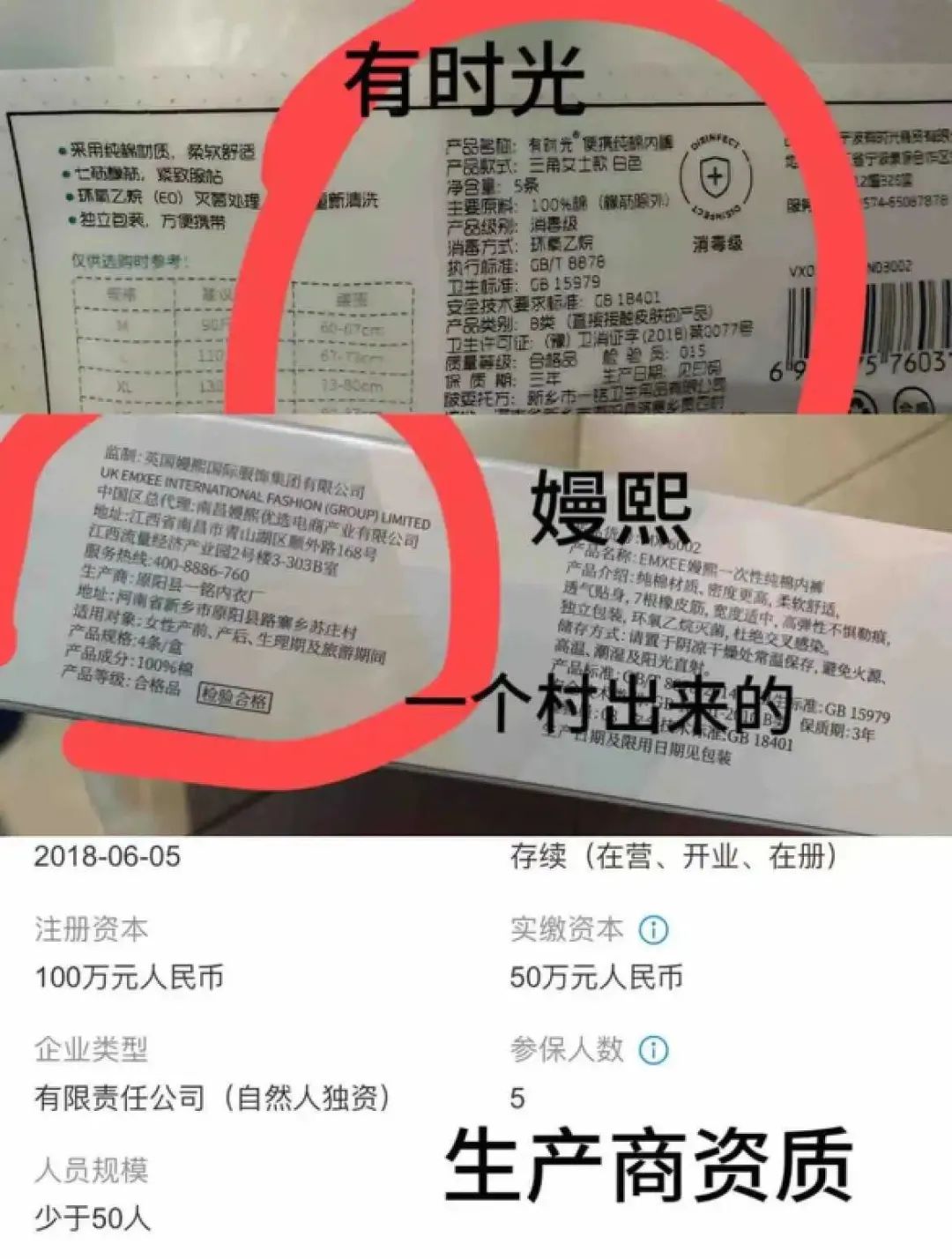 被全网强推和老爸评测合作的嫚熙和有时光等其他几个一次性内裤网红品牌都是同一个老家的。甭说后面是贴牌还是合作生产,测评来测评去,折腾的都是同一个小工厂不同时期的劳动产物。
