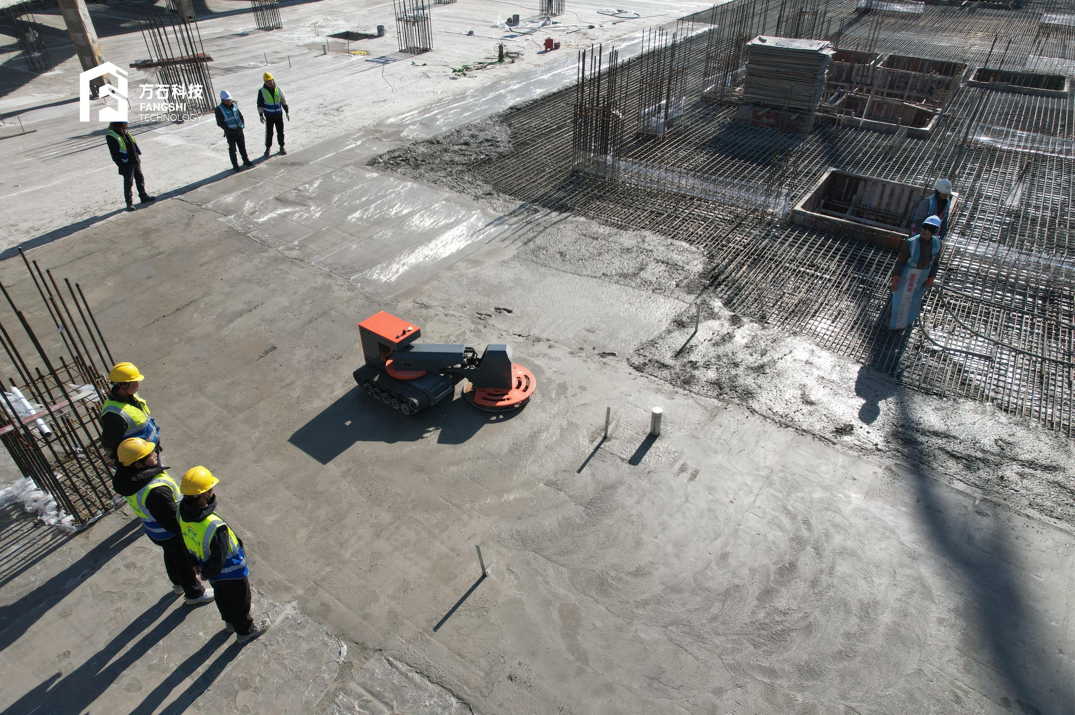 方石科技选择从最适合落地的施工场景入手,首先研发混凝土地坪施工机器人。建筑工地浇筑混凝土后,需要大量人力将地面整平、抹平、抹光。同时,地坪施工的标准化程度较高,适合用建筑机器人替代。方石科技与中建八局、北京建工等大型建筑企业合作,在项目工地上迭代了三款地坪施工机器人产品,分别是四轮激光地面整平机器人、履带抹平机器人、四盘地面抹光机器人。