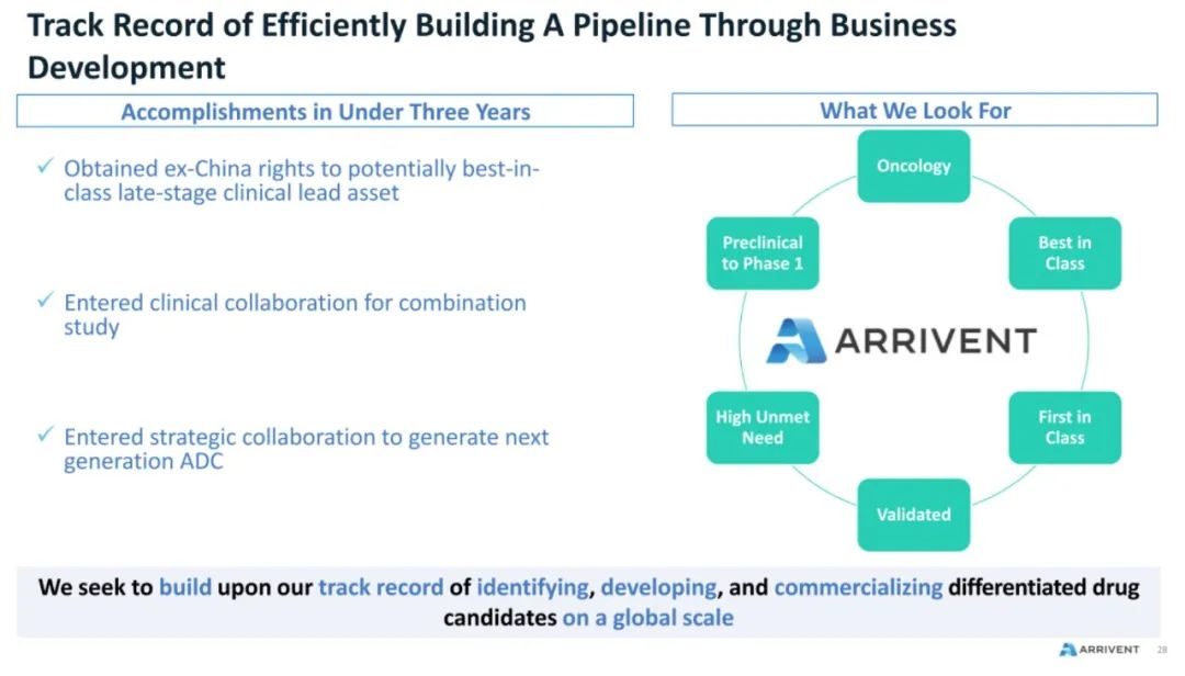 ArriVent通过与创新药研发公司的战略合作,为未满足临床需求的各种疾病提供来自全球的优质药物。目前,公司的重点研发领域为肿瘤治疗。
