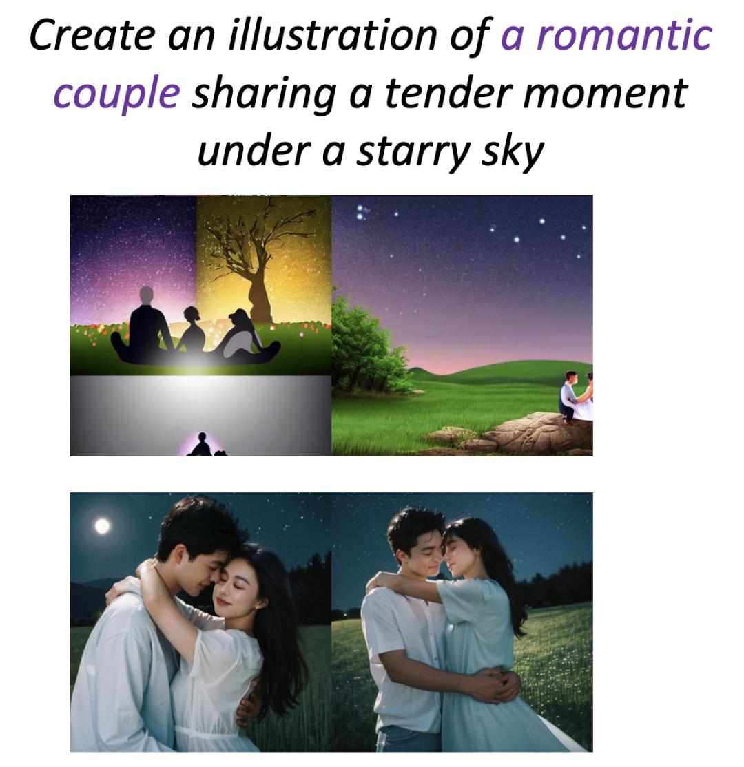 prompt:创作一幅插画,描绘一对浪漫的情侣在星空下分享温柔时刻的场景