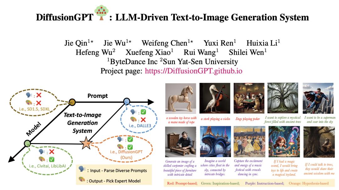 DiffusionGPT是个特别适合被GPT5纳入官方技能包的功能,不知道Sam会不会翻到字节这篇论文。