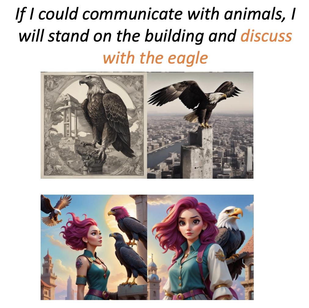 prompt:如果我能跟动物交流,我会站在楼顶和鹰说说话