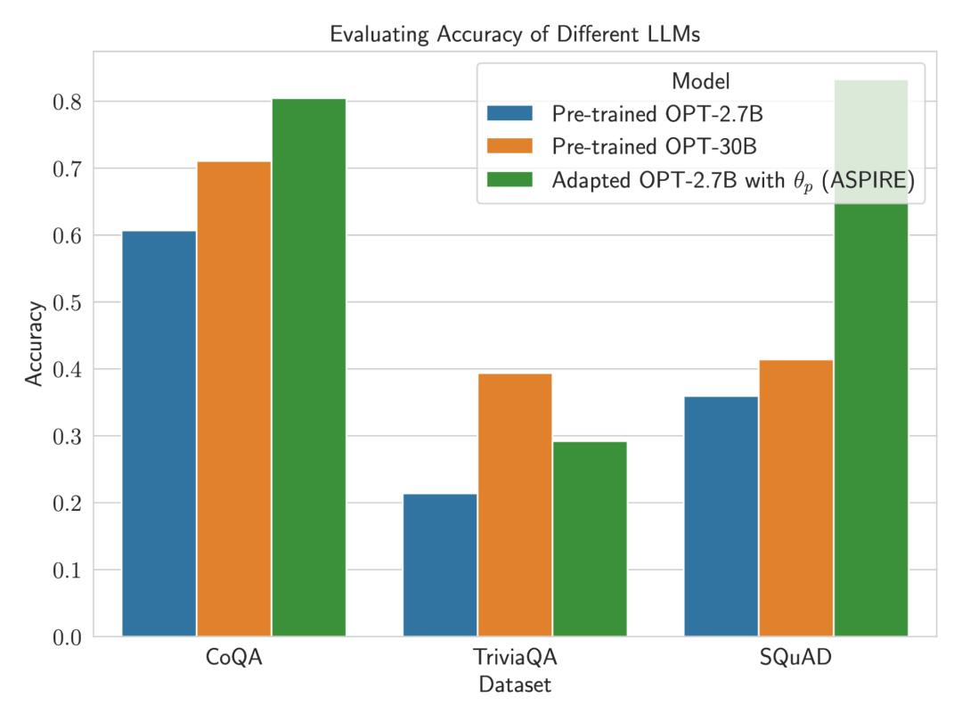 为了证明ASPIRE的效果,研究人员使用各种开放式预训练Transformer (OPT)模型在三个问答数据集(CoQA、TriviaQA和SQuAD)上对其进行评估。