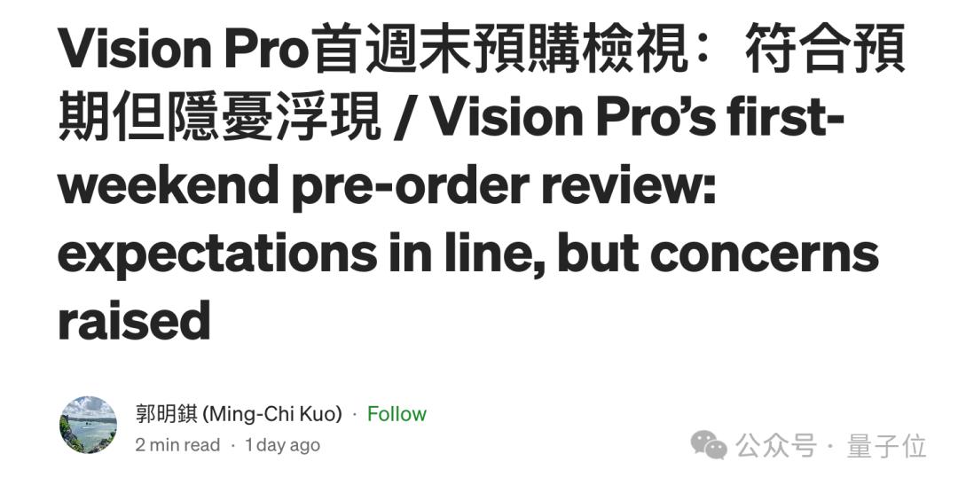 但在一片喜人数字后,郭明錤却泼了盆冷水:Vision Pro隐忧浮现。