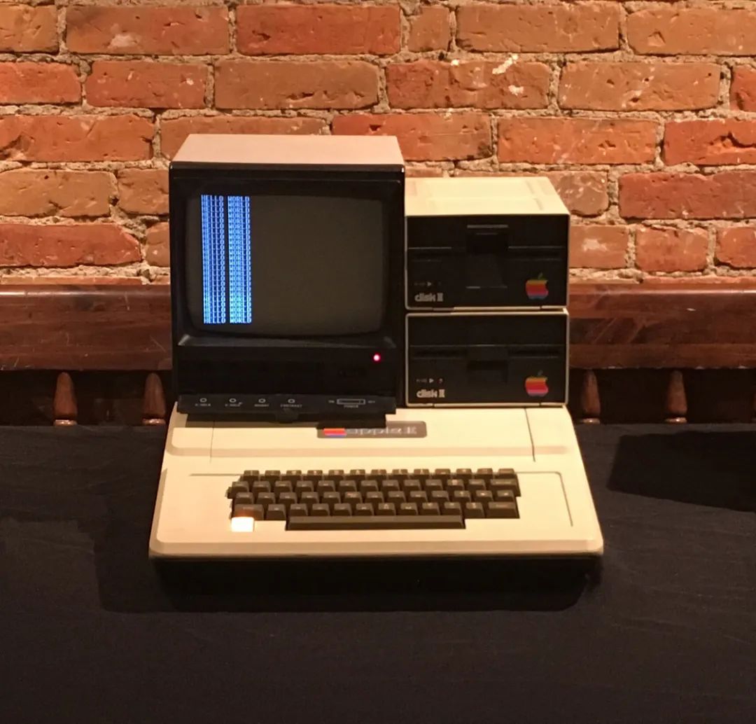 Apple II 最终在 1977 发布,它和另外两款同年发布的个人电脑被并称为「1977 三杰」,机身上的苹果 logo 被设计为彩色条纹覆盖的版本,他们想用 logo 告诉用户:它是一款可以输出彩色界面的个人电脑。