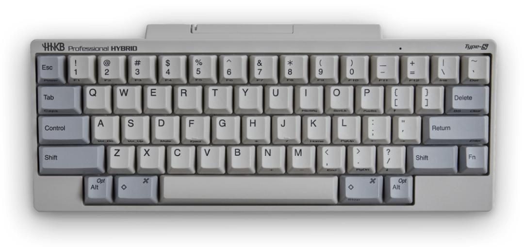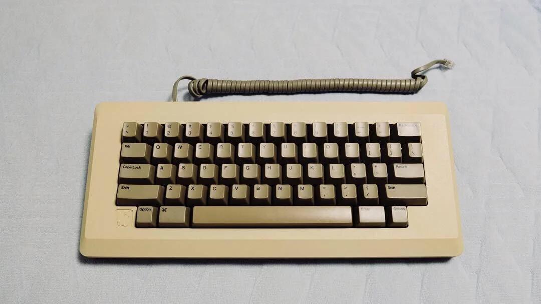 和主机使用了同款倒角的键盘上,苹果 LOGO 被置于键盘的左下角,仅保留必要按键的配列设计,赋予这款键盘以极致的简约感,多年后,和田英一和 PFU 基于 M0110 的配列结构发布了著名的 HHKB(Happy Hacking Keyboard)键盘,如今它已经被视为最适合编程的专业键盘:
