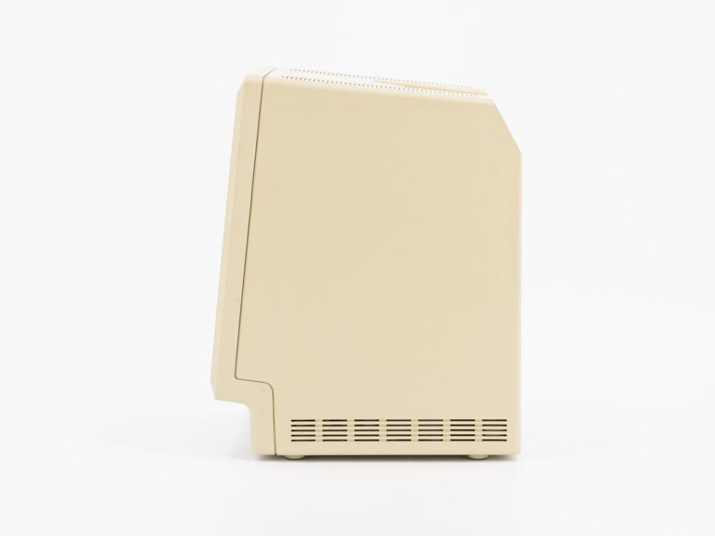 它的前脸是由 Terry Oyama 负责设计,而整个机身的后半部分则由 Jerry Manock 负责,两人虽然设计的不同部分,但是在整体的风格轮廓上是统一的,两者之间借由一条纤细的接缝结合在一起,和需要手工拼接的 Lisa 不同,Macintosh 的外壳开模精度极高,可以直接使用自动装配生产线来完成外壳组装。