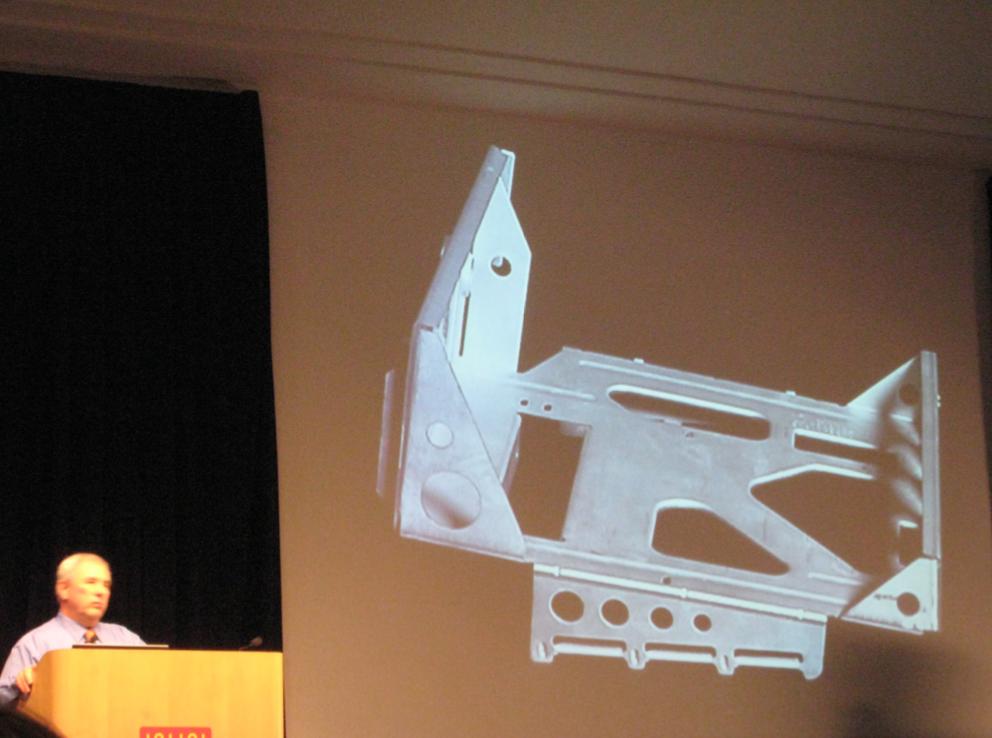 Jerry Manock 在展示 Macintosh 的内部框架