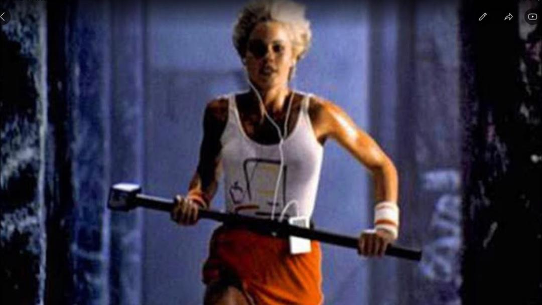 而在次年1月超级碗上的插播广告《1984》则是另外一个经典——在一个仅有黑白灰的乔治奥威尔的反乌托邦世界里,唯一一个彩色的女运动员,用铁锤狠狠砸向黑暗的旧秩序,白背心上是 Macintosh 的标识。