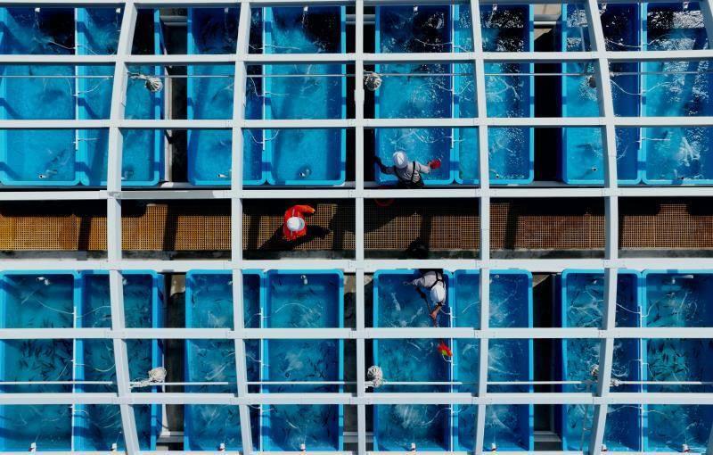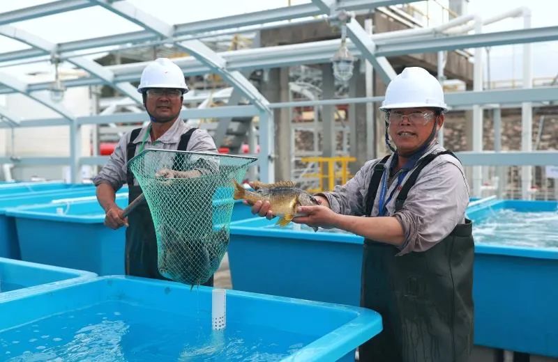 冷能养殖示范项目,工作人员正在进行养殖作业
