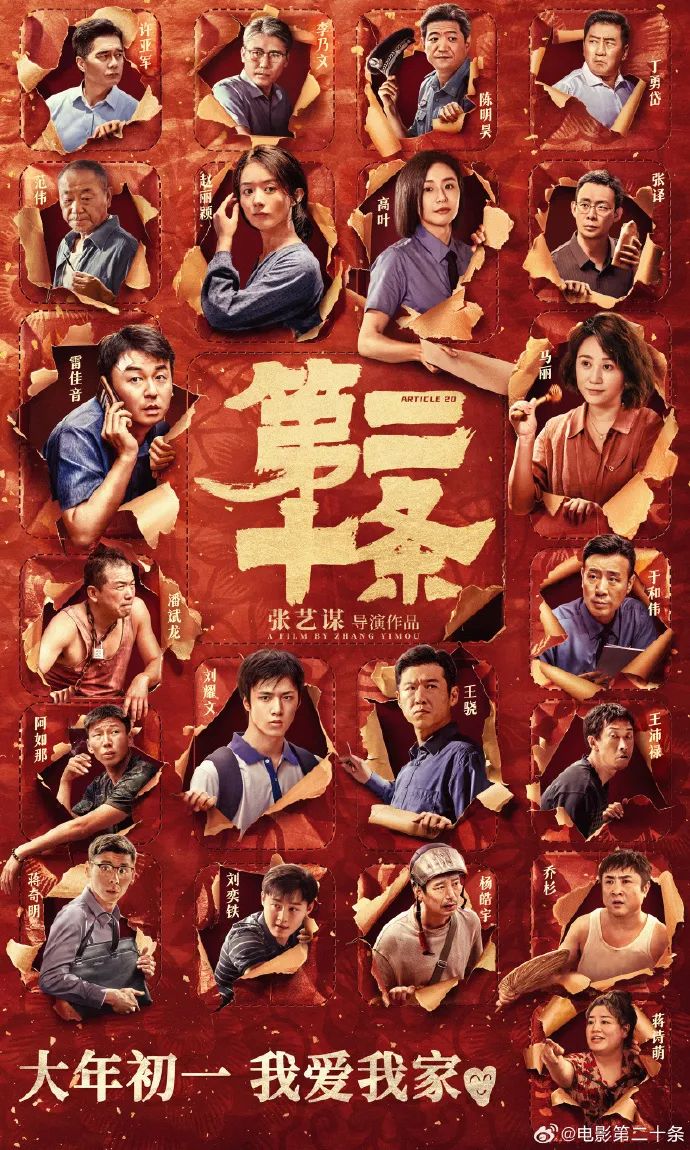 《第二十条》由张艺谋执导,雷佳音、马丽、赵丽颖特别主演,海报中还有张译、于和伟等许多大众熟悉的面孔,光是豪华的阵容就足够炒起热度。