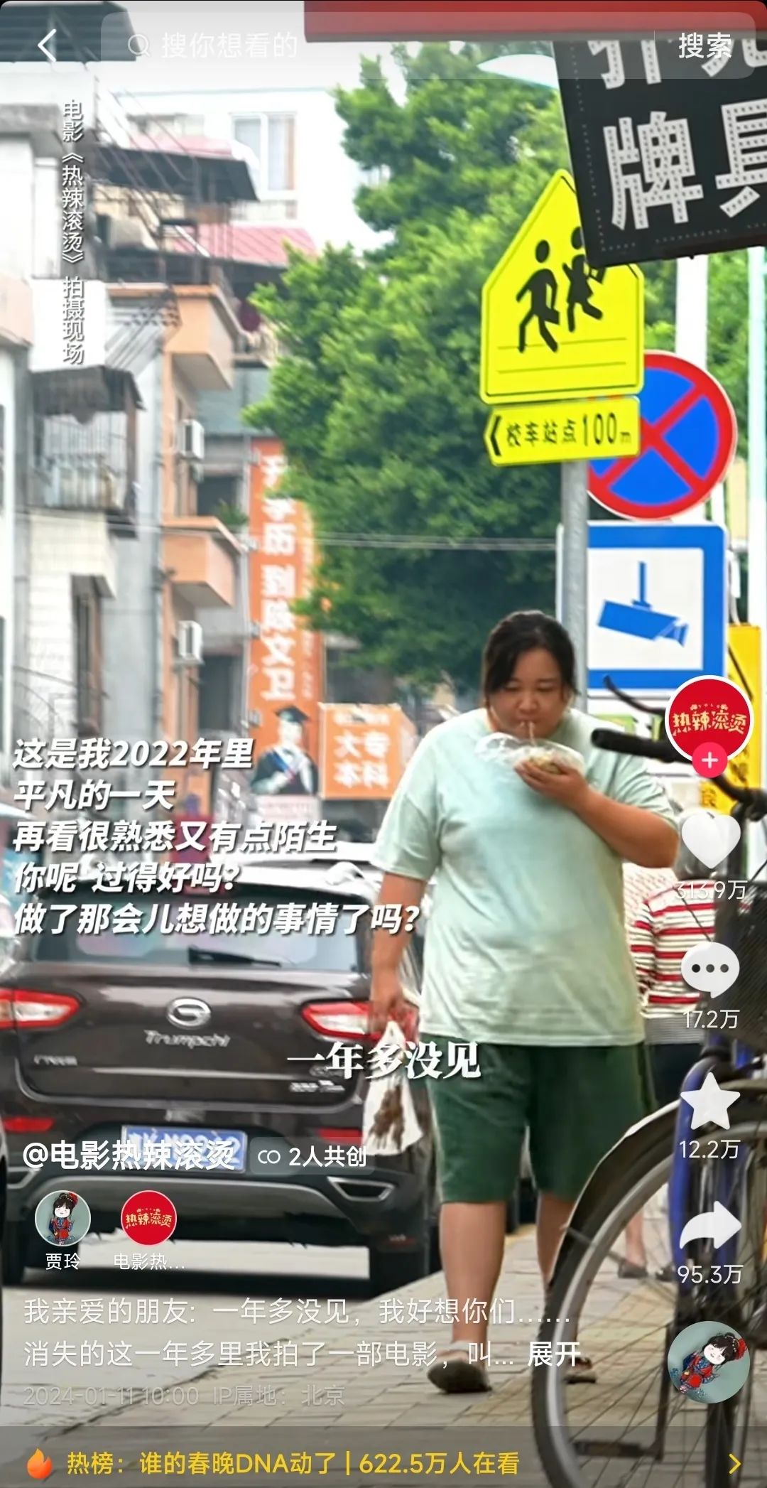 1月11日,贾玲在微博和抖音同步发布“减了100斤”的回归小作文,同时将她执导与主演的新电影《热辣滚烫》带到讨论焦点,当天上午,关于贾玲、瘦身、《热辣滚烫》的话题几乎“霸屏”了整个热搜榜单。
