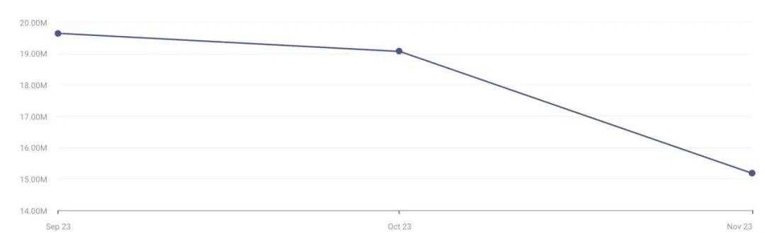 不过,一年多以来顺风顺水的 Fotor 在 11 月经历了一波明显的流量下滑,网站流量下滑幅度达 20% 以上,而根据 Similarweb 的数据,Fotor 12 月份的流量几乎与 11 月持平,并没有看到好转的迹象。