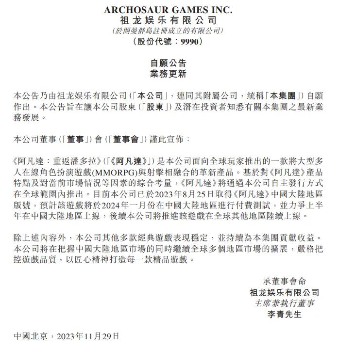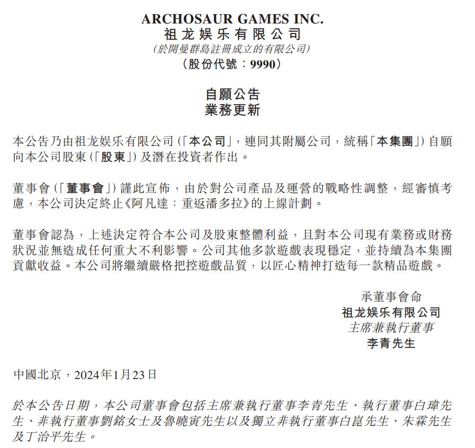 而对于《阿凡达:重返潘多拉》项目关停,祖龙在港交所公告中的解释是:由于对公司产品及运营的战略性调整,经审慎考虑,公司决定终止《阿凡达:重返潘多拉》的上线计划。董事会认为,上述决定符合公司及股东整体利益,且对公司现有业务或财务状况并无造成任何重大不利影响。