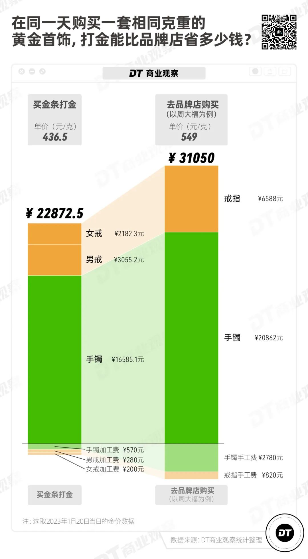 买金条打首饰,究竟能省多少钱?