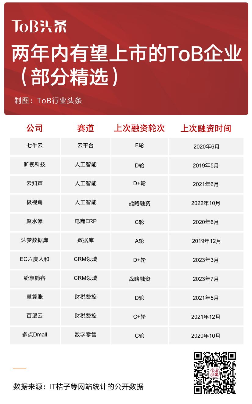 文末附带目前ToB各细分领域已经完成上市的企业 (部分) 名单以及有望在未来两年IPO的 (部分) 名单,它们的商业模式和实际业绩均在财报和招股书中有所披露,有些企业稳步增长,但大部分企业 (尤其是SaaS类) 企业目前并未有所好转,在未来几年里,它们会以良好的表现佐证企服的光明未来吗?欢迎讨论。
