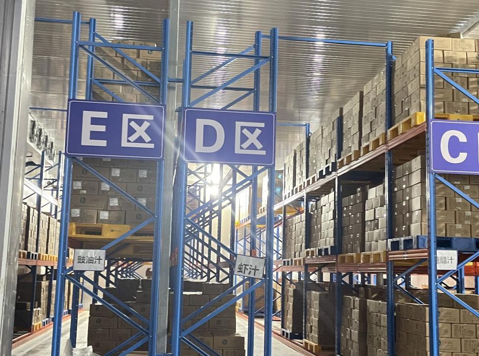 安徽铜陵小菜园供应链公司仓库中,各类料包有序堆放。 拍摄 / 李莹