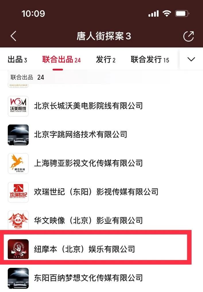 该案件的迷惑人之处,同样在于出品方的可查证性。林女士特别提到,在上映之前,纽摩本、昊娱文化这两家公司都在官方平台的出品方之列,“不清楚为什么后者后来消失了”。