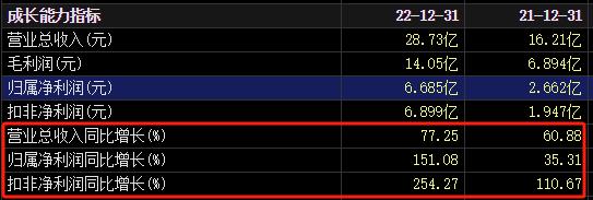 上市以来,公司经营业绩保持了快速增长。2021年和2022年,公司营业收入分别为16.21亿元和28.73亿元,同比增长60.88%和77.25%;扣非净利润则分别为1.95亿元和6.9亿元,同比增长110%和254%。