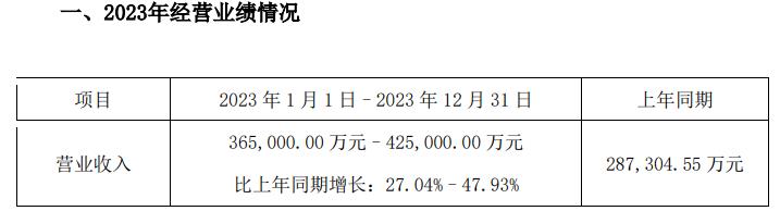 与此同时,公司预测2024年全年营业收入将在50亿元至58亿元之间。按照预告的2023年营收中位数计算,其2024年营收将同比增长26.58%-46.84%。对2024年的预测,公司同样没有给出净利润数据。