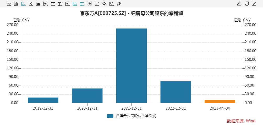 2023年前三季度,国内面板巨头京东方实现营收1265.15亿元,同比下降4.69%;实现归母净利润10.22亿元,同比下降80.68%。