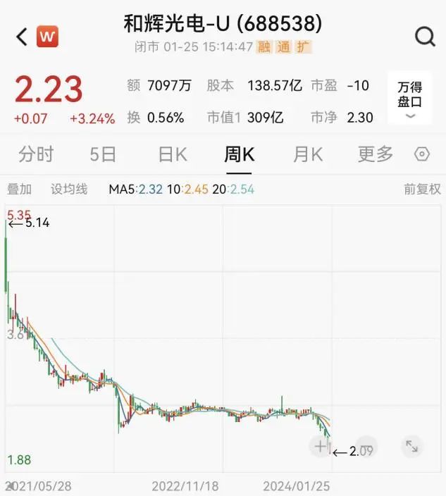 上市两年多,和辉光电股价一直跌跌不休,至今仅为2.23元/股。