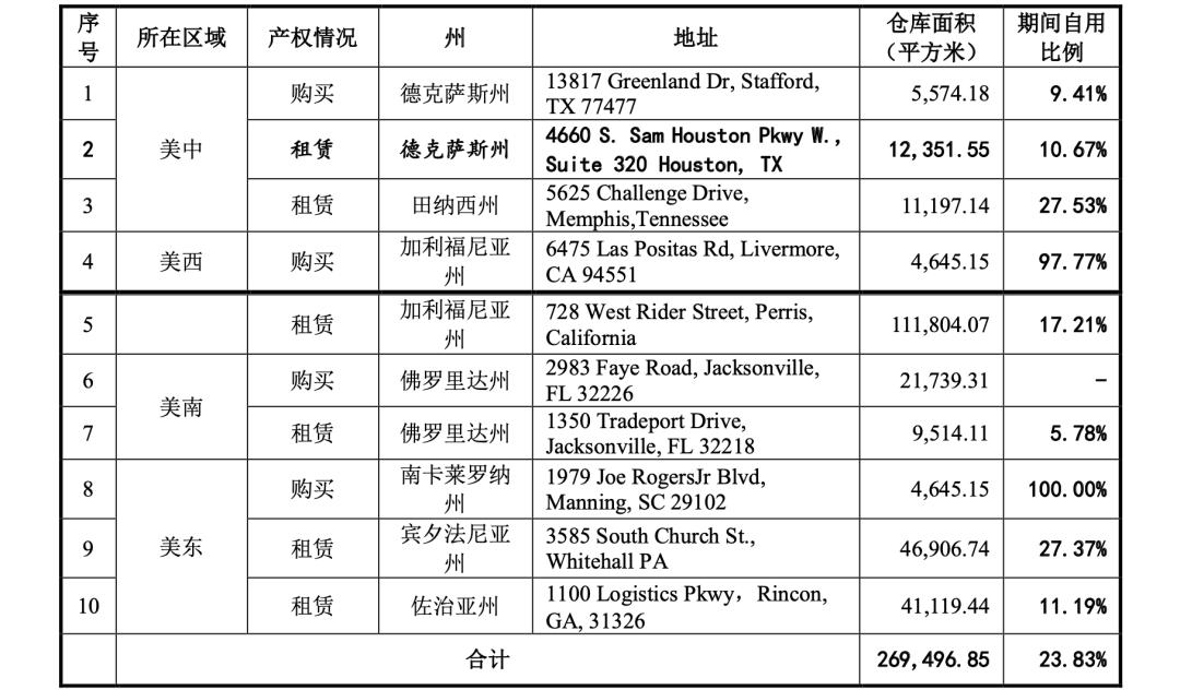 值得关注的是,在全球化的经营布局下,一些公司还披露了海外购房的计划或进展。比如,利君股份披露,为拓展公司主营粉磨装备业务的国际市场,计划自筹资金不超过1000万美元在新加坡购买办公用房产;主营升降桌的乐歌股份年内完成美国一处海外仓的产权交割,价格为1600万美元,面积23.4万平方英尺,由美国私营工业地产开发企业JAX2983, LLC建造出售,购买该仓库旨在推动跨境电商业务。数据显示,截至2023年9月,乐歌在美、英、德、日共计有13个海外仓,面积28.82 万平方米,其中美国的10个仓库全部用于公共海外仓业务,共计26.95万平方米。