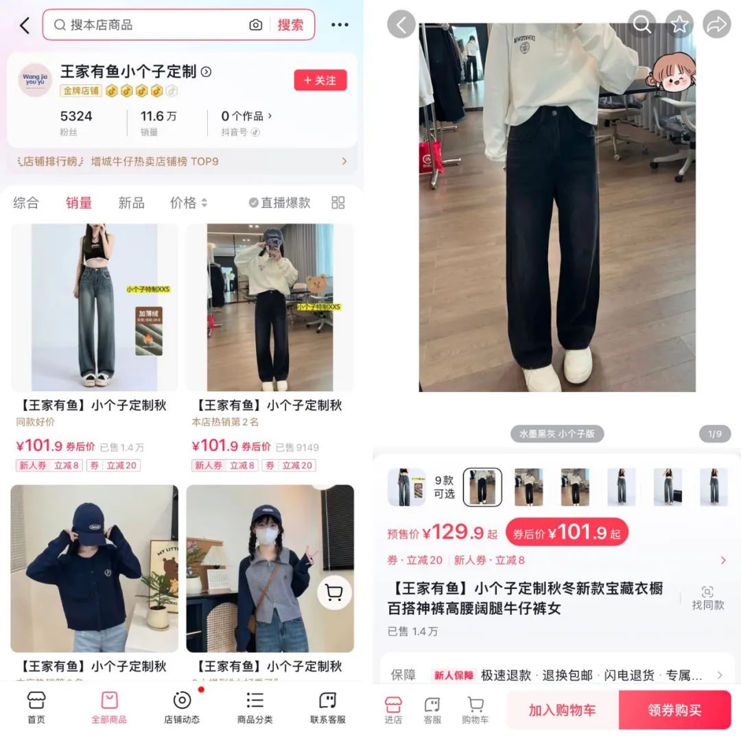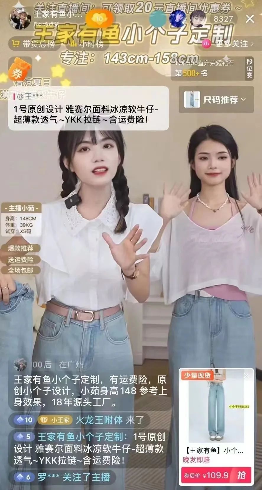 在父亲的建议下,王思源选择在抖音开店。但对于半路出家的她来说,电商运营、直播卖货都需要系统学习。王思源只能和团队另一个成员小鱼硬着头皮亲自直播。令人欣喜的是,二人的第一次直播,直播间就涌入了500人,第二天直接破万。“王家有鱼”的店铺名也因为这样的组合而正式命名,而后又根据体型娇小女士的着装需求推出了“王家有鱼小个子定制”店铺。