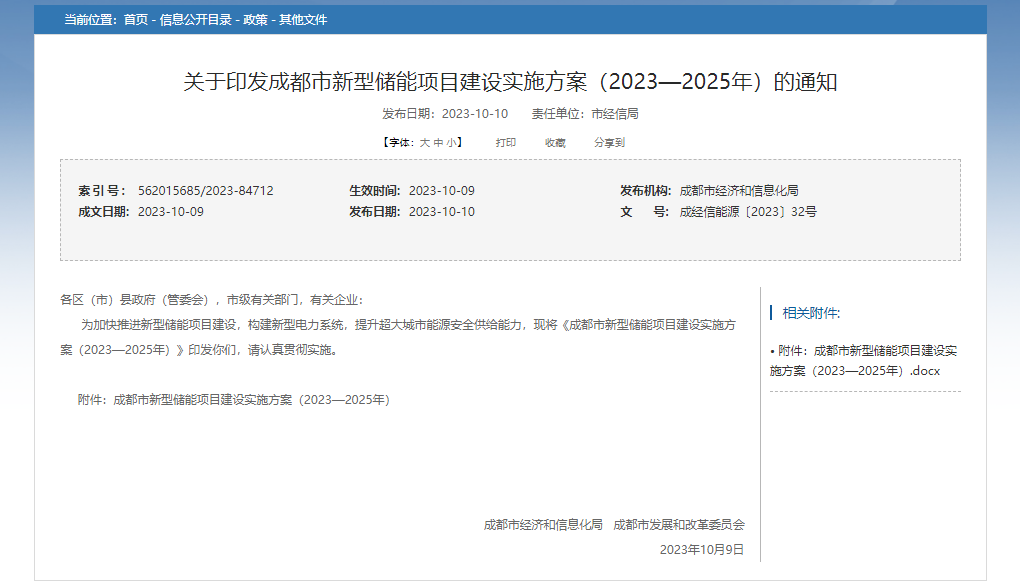 关于印发成都市新型储能项目建设实施方案(2023—2025年)的通知 - 成都市经济和信息化局信息公开目录