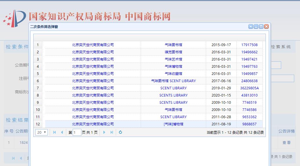 其中,注册成功后又被宣告无效的第3类商标有12个,涉及商标名有“气味图书馆”“气味图书馆 SCENT LIBRARY”“气味艺术馆”“嗅觉图书馆”等。