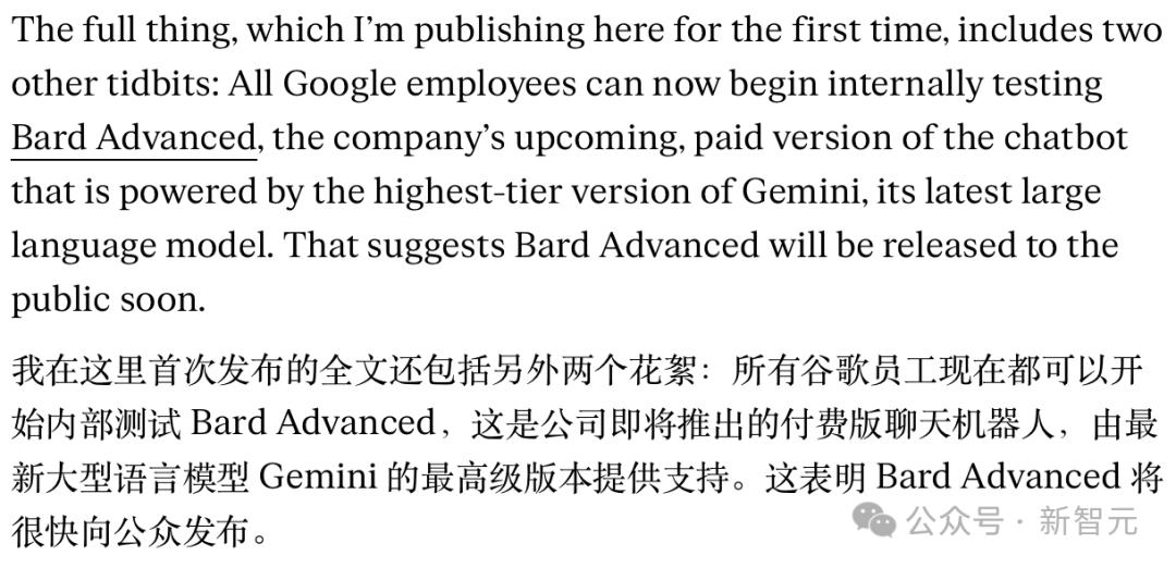 而根据前段时间外媒曝出的内部邮件,搭载Gemini Ultra的Bard Advanced已经全面开放给谷歌员工试用。